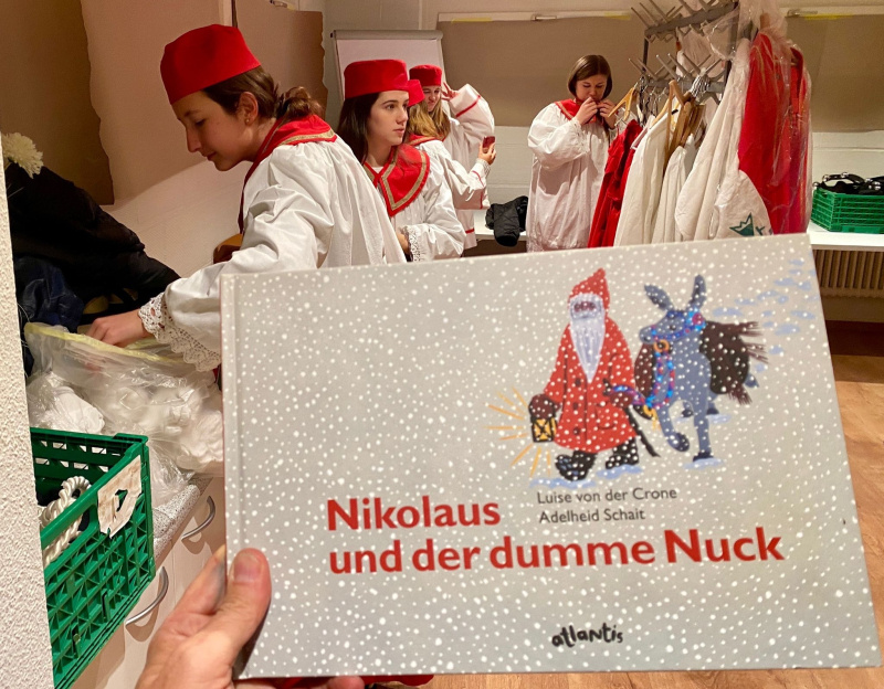 Auch in Rain war der Samichlaus unterwegs. Nach dem feierlichen Einzug am Samstag mit den Rainer Trychlern und der gemütlichen Schmutzlibar, ist er seit Sonntag zu den Familien unterwegs und sorgt für leuchtende Kinderaugen. Der Brauch wird in Rain vortrefflich organisiert, seit vielen Jahren vom Chlaus-VeRain. Schmutzli, mit Gaben schwerbeladene Dienerinnen, ein prächtiger Chlaus und der Knecht Ruprecht waren denn auch startklar für die Besuche bei den Familien, wo sie sehnlich erwartet wurden.