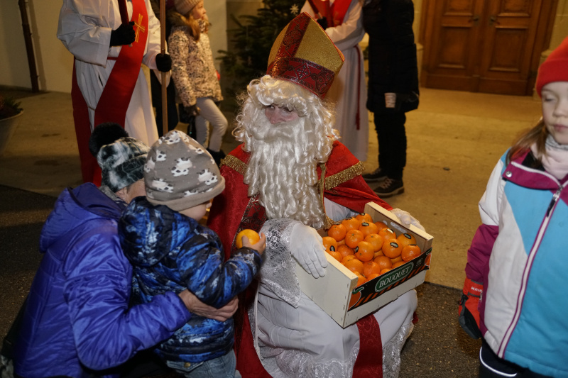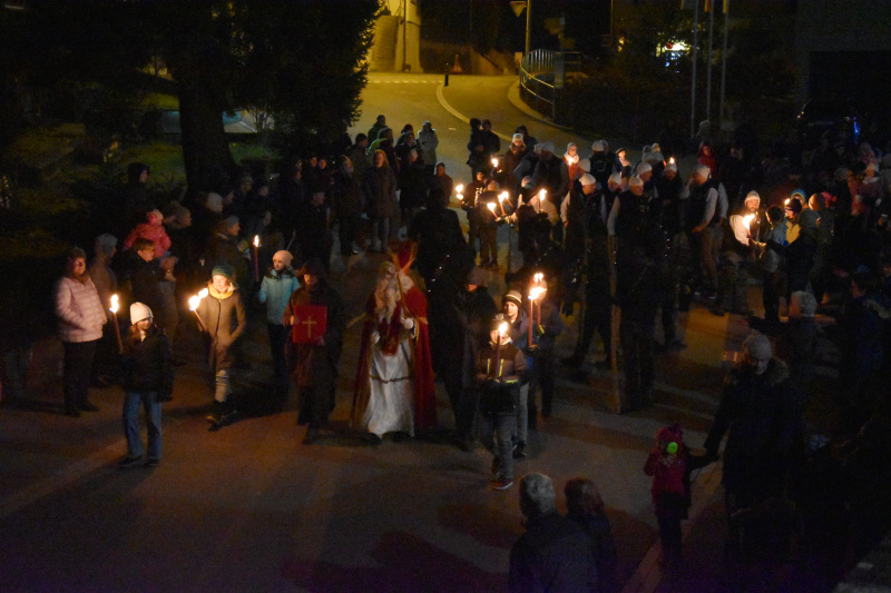 Unter den imposanten Trychel-Klängen der Trychler-Gruppe Oberkirch und des Trychler-Clubs Rickenbach begleitete eine Schar von Schulkindern aus der ersten bis sechsten Klasse den Samichlaus mit Fackeln und Laternen von der Pfarrkirche St. Margaretha hinauf zum Kubus. Dort fand anschliessend eine Samichlaus-Bescherung statt. Traditionsgemäss wurde den Teilnehmenden neben Kaffee und Kuchen eine Mehlsuppe serviert.