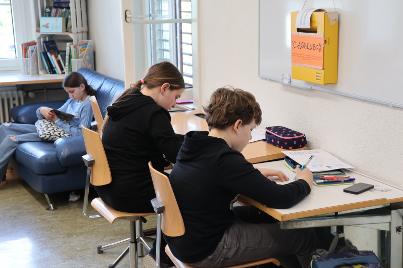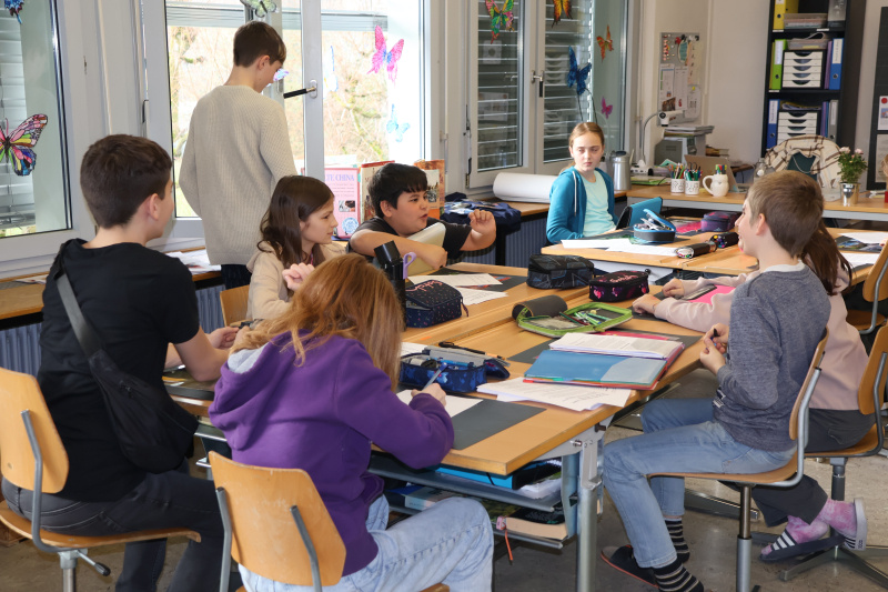 In einer Klasse ist ein Lehrgespräch im Kreis im Gang, alle scheinen sich aktiv zu beteiligen, niemand scheint sich von den recht zahlreichen Besuchern ernsthaft ablenken zu lassen. In einer anderen Klasse wird mit zugelosten Positionen diskutiert, ob Schulnoten noch zeitgemäss sind. Die Lehrerin erklärt den Schülerinnen und Schülern den Wert von Debatten und Positionsbezügen: «Wenn ihr später mehr Lohn möchtet, müsst ihr auch verhandeln können, aufzeigen, was ihr könnt und was ihr aushandeln wollt.» Das scheint allen einzuleuchten. Im BG, also bildnerisches Gestalten, ist grad eine Einzelarbeit im Gang. Jeder ist konzentriert und kommt bei Fragen und für den nächsten Auftrag zur Lehrperson, die jede und jeden geduldig und individuell betreut und weiterbringt. So vergeht die Zeit im Flug, und um 11.45 scheinen alle hungrig zu sein, um sich für den Nachmittag zu stärken. Auch die Elternmitwirkung hat sich in einem Raum eingerichtet und diskutiert mit Eltern über ihre Aufgaben und die Schule von heute.