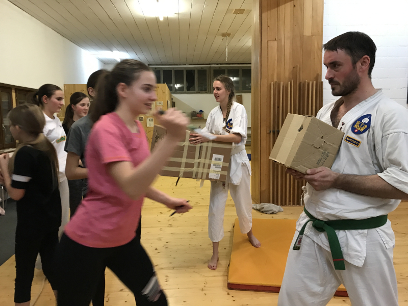 An drei Abenden wurde den Jugendlichen unter Instruktion der drei Leitenden verschiedene Techniken beigebracht, die nicht nur körperliche Stärke erfordern, sondern auch Selbstbewusstsein und Selbstbehauptung. Die Teilnehmerinnen konnten in einer sicheren und unterstützenden Umgebung lernen, wie sie sich in potenziell gefährlichen Situationen schützen und verhalten können. Die Jugendlichen zeigten grosses Engagement und waren motiviert, die erlernten Techniken und Tricks aneinander auszuprobieren und zu üben und dabei gingen sie nicht etwa zimperlich miteinander um. Dazwischen gab es immer auch die Gelegenheit, Fragen zu stellen. In den Theorie-Sequenzen wurden spannende Informationen vermittelt, wie man zum Beispiel Gefahren frühzeitig erkennen kann, Auskunft erteilt über das Recht bei Angriff und Verteidigung und viele andere interessante Fakten.