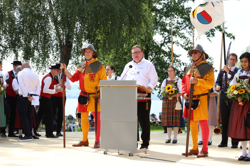 «Singen, Jutzen und Feiern gibt Energie», sagte der aktive Jodler und Hauptbotschafter des Fests. Stadtpräsident Jürg Aebi überreichte OK-Präsident Toni Bussmann den goldenen Schlüssel und damit «für drei Tage die Macht über Sempach». Bussmann dankte für die Ehre. «Endlich können wir zeigen, wofür wir in den vergangenen zwei Jahren intensiv gearbeitet haben», fügte er an. Zudem sei das Wetter wie von ihm prognostiziert, sagte er augenzwinkernd: «27 Grad mit einer leichten Brise.» Am Samstag gehen die Wettvorträge weiter. Danach steht eine Freinacht an, inklusive Liveübertragung der EM-Achtelfinale im Jodlerkino. Der Sonntag beginnt mit einem Festakt, um 13.45 Uhr folgt der grosse Festumzug mit 44 Nummern. Das OK freut sich auf viele Gäste und auf ein tolles Fest «Bi üs am See».