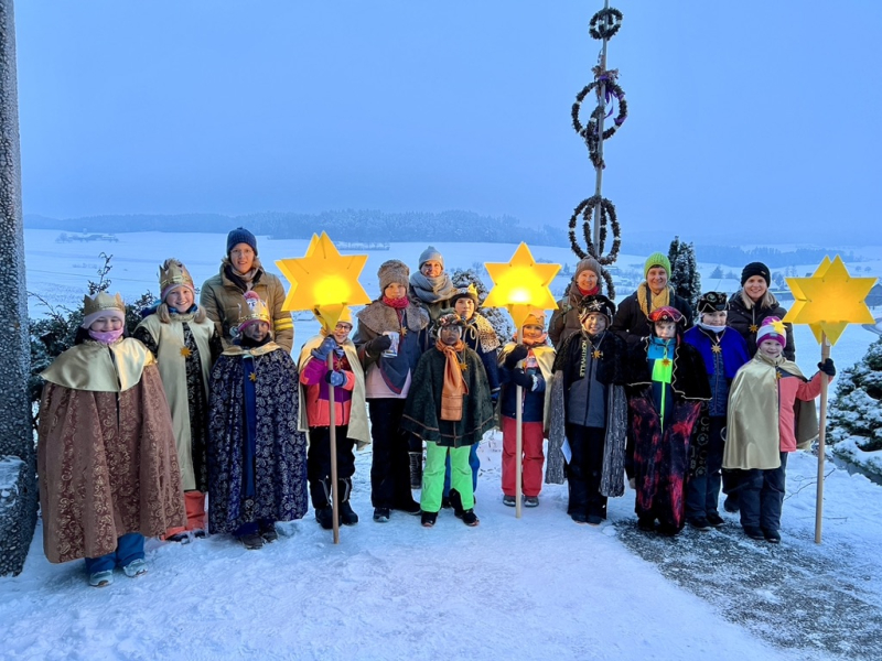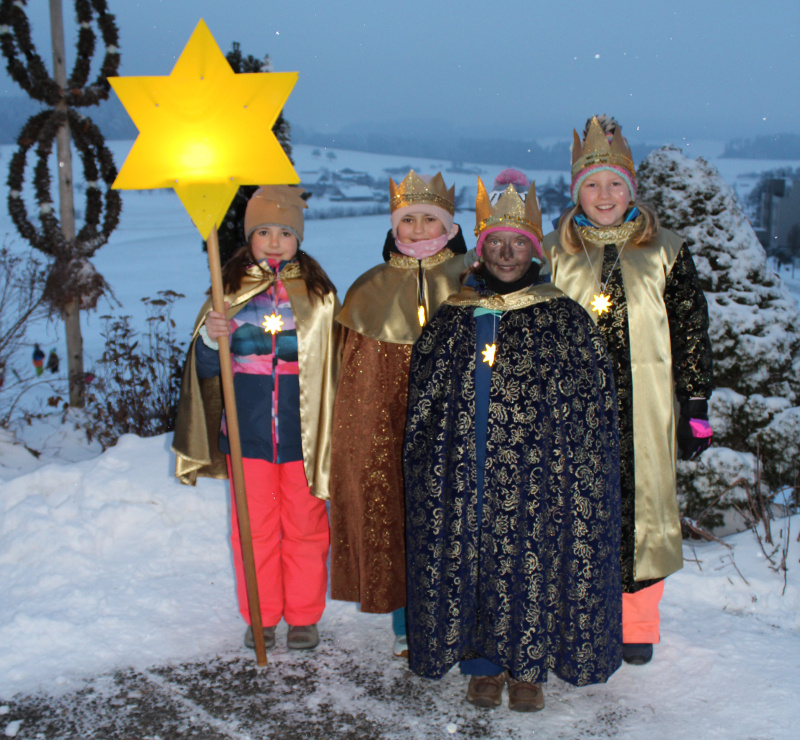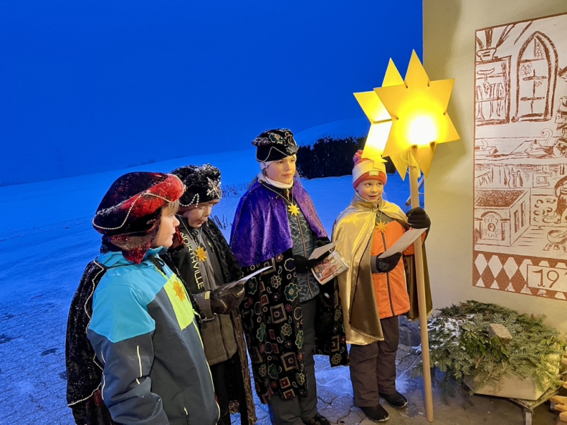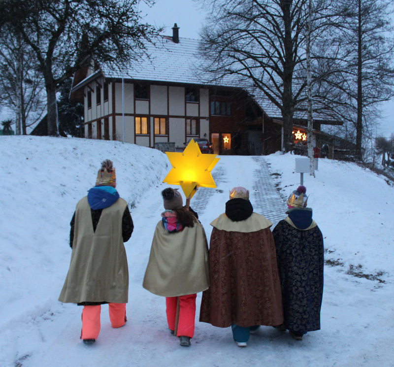Die frostig winterlichen Temperaturen sowie die kalte Bise hinderte die insgesamt 21 Jugendlichen und ihre Begleitpersonen keineswegs, am 8. und 9. Januar in drei Gruppen von Haus zu Haus zu ziehen. In der Gestalt der Heiligen Drei Könige verkündeten sie mit ihren Segenssprüchen die frohe Botschaft, sangen mit Freude das Sternsinger-Lied und schrieben mit den gesegneten Kreiden den traditionellen Schriftzug 20*C+M+B+24 (übersetzt «Christus segne dieses Haus») über die Haustüren oder verteilten einen Segenskleber.