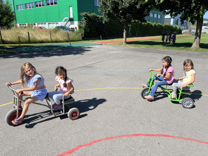 Solch lachende Gesichter bei den Schülerinnen und Schülern gibt es nicht nur kurz vor den Sommerferien, sondern auch, wenn die Kinder mit den Pausenspielgeräten spielen dürfen.