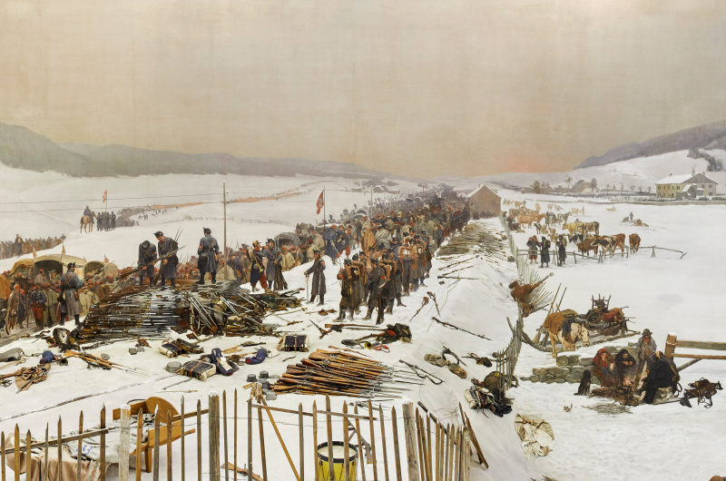 Die Soldaten wurden folglich über die Kantone verteilt, interniert, bewacht und gepflegt. Dennoch starben viele von ihnen. Der Deutsch-Französische Krieg endete, Frankreich verlor das Elsass und Lothringen. «Bourbakis Soldaten», die ja dann «General Clinchants Soldaten» waren, wurden wieder nach Frankreich zurückgeschickt. Als Bourbaki-Armee gingen sie aber durch diese Tragödie in die Geschichte ein. Zehn Jahre später malte Edouard Castres in Genf die Szenerie auf ein imposantes, 112 mal 14 Meter grosses Rundbild, ein Panorama. Später wurde dieses nach Luzern gebracht, wo 1889 eigens dafür ein rundes Gebäude mit Kuppeldach gebaut wurde am Löwenplatz, heute bestens bekannt als Bourbaki Panorama.