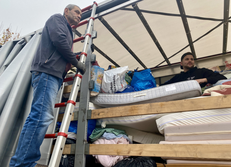 Der Lastwagen, der danach direkt in die Ukraine losfuhr, war von 9 bis 11 Uhr vor Ort. Warme Kleider, Matratzen, Schlafsäcke, Decken, Isomatten, Stromgeneratoren, medizinische Geräte und sechs (!) Holzöfen wurden eingeladen, bis der Lastwagen total voll war.