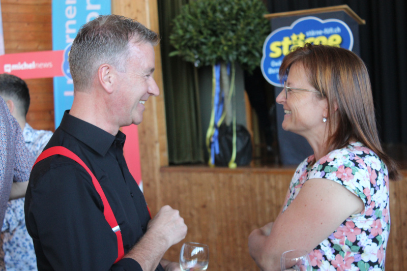 Bei Lüthi Mode dreht das Glücksrad im Dauerlauf, egal ob Gutschein oder Trostpreis – es macht Spass. Ariane Schlapfer und Thomas Lüthi meinen kurz und bündig: «Super! Passt!» Und Beat Amrein von Amrein AG Strassenbau über die Freude auf der Seite der Aussteller: «Spannend, so viele Gesichter! Plötzlich siehst jemanden, den du nur vom Telefonieren her kennst.»