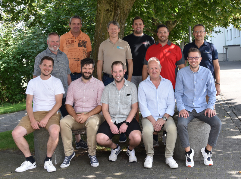 Das Gwärb-OK in heiterer Stimmung: hinten, von links: Alfons Käch, Rosario Galliker, Pius Furter, Michael Käch, Andreas Meyer, Adriano Polesel. Vorne: Michi Keller, Andreas Rütti, Raphael Meyer, Dani Kreienbühl, Andreas Bäsel. Auf dem Bild fehlen Rahel Urech, Stefan Galliker, Ivo van Herk und Markus Bucher.