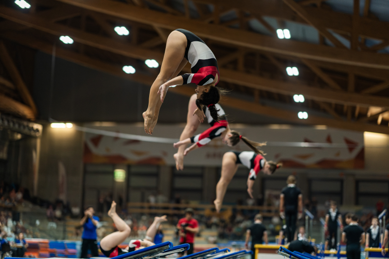 Kurz nach der Vorstellung der Finalisten bereitete sich der STV Rickenbach auf das Einturnen am Gerät vor. Nach dem Aufwärmen startete das Team pünktlich um 14.40 Uhr mit dem Sprungprogramm – der Moment, auf den alle hingearbeitet hatten. Jedes Teammitglied gab sein Bestes, und die Synchronität sowie Dynamik waren auf höchstem Niveau.