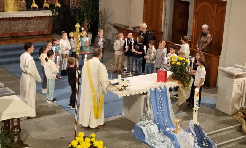 Die angehenden Rainer Erstkommunikantinnen und Erstkommunikanten feierten am letzten Samstagabend ihre Taufgelübde-Erneuerung in der Rainer Pfarrkirche St. Jakobus.