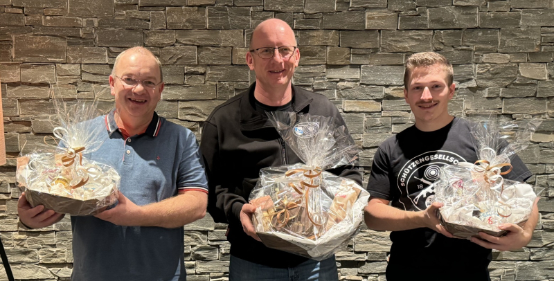 In der Saison 2023 konnte Toni Estermann klar und verdient die Jahresmeisterschaft gewinnen. Über das gesamte Schützenjahr war er der konstanteste Schütze und konnte vor Karsten Bliedung und Gabriel Wey die Jahresmeisterschaft für sich entscheiden. Die Sieger durften ein super Geschenk-Körbli der Rickenbacher Dorfwirtschaft als Preis entgegennehmen. Herzliche Gratulation.