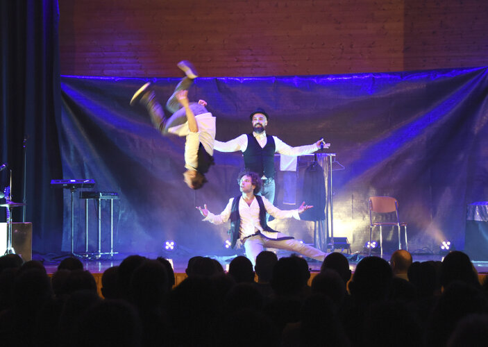 War das nun Theater, Zirkus oder Konzert? War das Comedy, Beatbox oder Ballett? Das Publikum des Kulturevents der Chommerbuebe dürfte auch hinterher noch darüber rätseln, was sie da für einen Abend verbracht haben. Schwer zu beschreiben blieb er, Wünsche offen liess er aber kaum, wie der Applaus vermuten liess. Man fühlte sich vom Trio Tridiculous bestens unterhalten, zeitweise auch tief beeindruckt. Eine tolle Stimmung herrschte vom Apéro bis zum Betrieb an den gemütlichen Festbänken im stilvoll dekorierten Lindensaal.