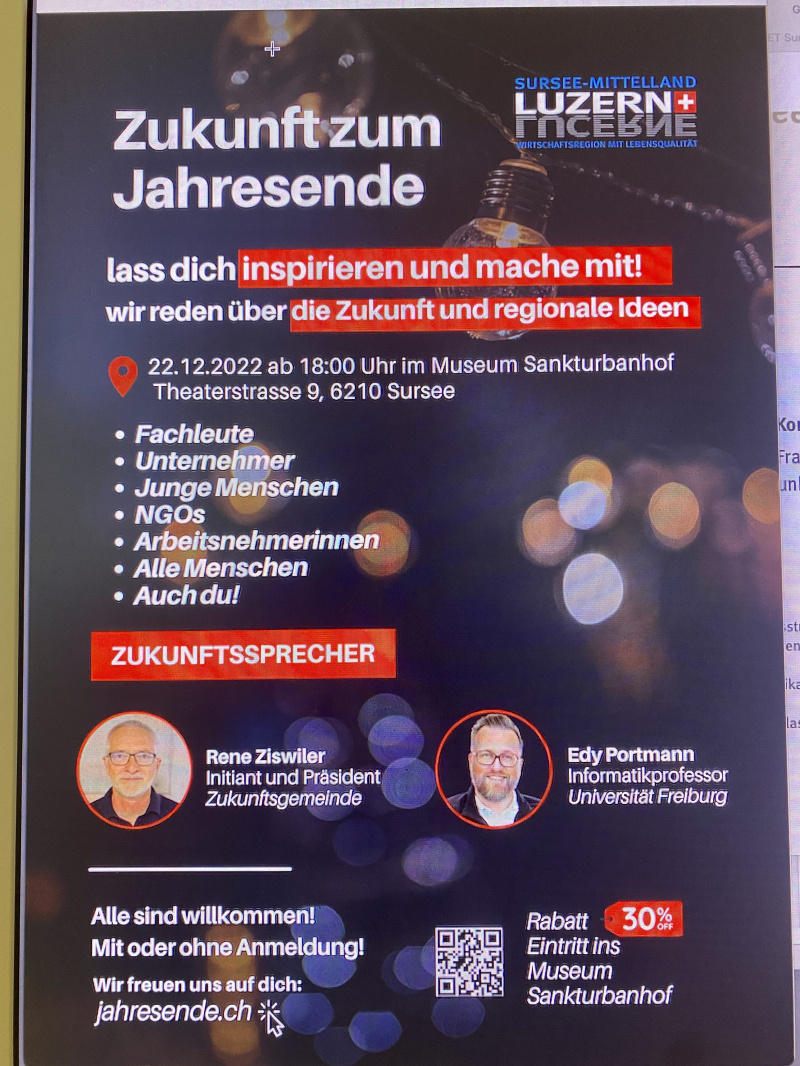 Der Regionale Entwicklungsträger (RET) Sursee-Mittelland mit 19 Gemeinden, darunter Beromünster, Rickenbach und Hildisrieden, organisierte in Zusammenarbeit mit der ajato GmbH am 22. Dezember im Museum Sankturbanhof Sursee einen inspirierten Abend mit Brainstorming zu Zukunftsthemen bei einem warmen Getränk.
