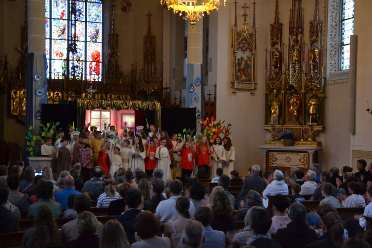 Mit Leuchteffekten unterstützen die Kinder das Schlusslied.