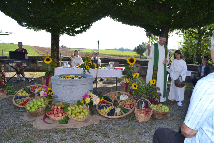 Am Sonntag, 4. September, feierte die Pfarrei Hildisrieden das Erntedankfest. Bei schönstem Herbstwetter dankten die Pfarreiangehörigen im Freien auf dem Begegnungsplatz südöstlich der Kirche für die schöne Ernte, die trotz längerer Wassermangelzeit in diesen Tagen eingebracht werden kann.
