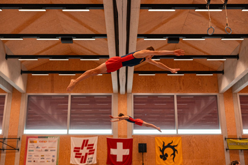 Der Wettkampftag begann für die 26 Turnerinnen und Turner um 9 Uhr mit der Carfahrt Richtung Freiamt. Nach der Ankunft wurde der Wettkampfplatz begutachtet, und um 10.45 Uhr begannen sich die Turnenden mit einem Trockendurchgang und dem Einlaufen auf den Wettkampf vorzubereiten. Um 11.45 Uhr wurde es ernst: Das junge Team absolvierte unter der Leitung von Sandro Rogger, Laura Stutz und Rebekka Furrer einen souveränen ersten Sprungdurchgang. Die vielen angereisten Fans, darunter auch einige aus der aktiven Sektion, waren begeistert. Das Team wurde mit grossem Jubel gefeiert und erhielt die beeindruckende Note von 9.40.
