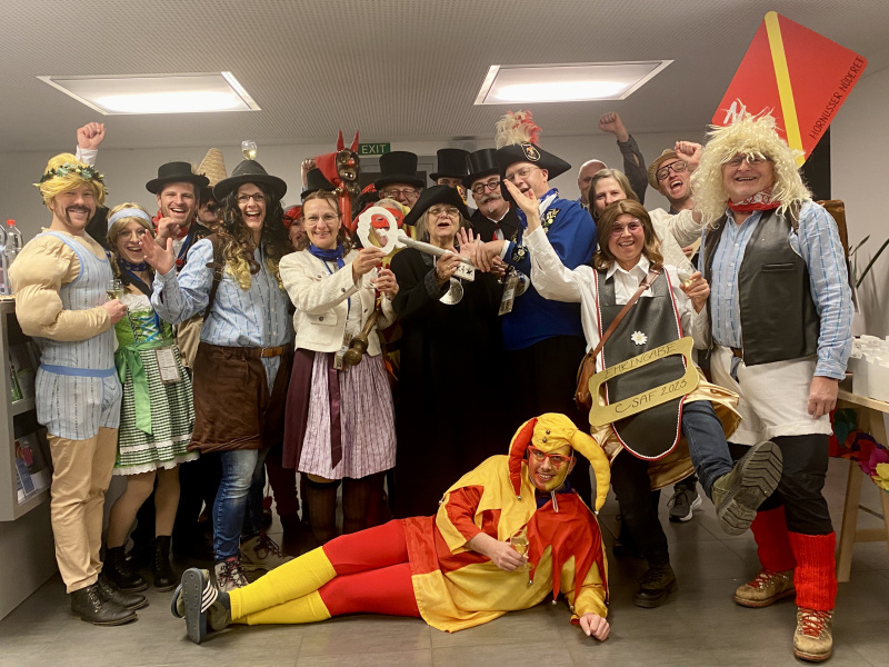 Dieses Jahr hat ja die Götschizunft Hildisrieden die Regentschaft über den Umzug, was dem Ganzen eine besondere Note gibt. Mit dem Schlüssel wurde symbolisch der Schlüssel zur Fasnacht übergeben. «Mit den Mottos «Zrogg i Fläcke» und «ESAF Nüderef 2023: Eifach schwungvoll ad Fasnacht» soll uns eine tolle Fasnacht bevorstehen», meinte der Gemeindepräsident versöhnlich. Anschliessend wurde der Fahnenmarsch gespielt und die Fahne der Fleckenzunft aufgezogen. Mit viel Gelächter und gegenseitigem Aufziehen ging es dann zum Austausch und zum ausgedehnten Apéro und Aufheizen der Fasnacht in die Schol. «Apérölen» ist schliesslich eine Freude, unabhängig davon, wer grad an der Macht ist. Alle Gemeinderätinnen und Gemeinderäte schienen wie erlöst und locker wie lange nicht mehr, ja fast übermütig. Hans-Peter Arnold gab sein Rede-Manuskript bereitwillig und spontan dem Pressefritzen und meinte, er stehe für jegliche weitere Auskünfte jederzeit zur Verfügung. Ach, wär das schön, wenn immer Fasnacht wär... Und die Bööggenzunft wär nicht die Böögenzunft, wenn sie nicht noch ein Haus weitergezogen wär. Eine Zünfterin meinte gegenüber dem «Michelsämter» versöhnlich: «Der Gemeinderat hat das Sabbatical redlich verdient». Ja, die Zünfter können nun mal den Laden aufmischen – dass sie es besser können als die Politiker, müssen sie auch erst noch beweisen.