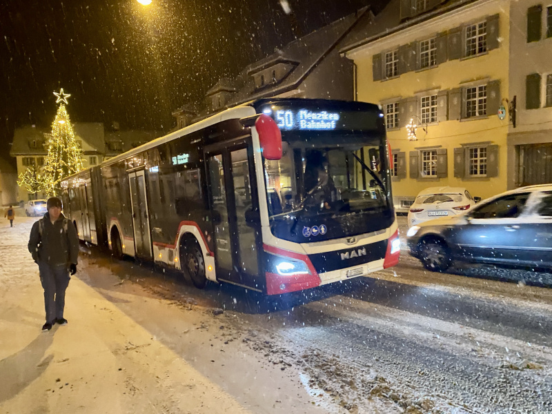 Der 50er-Bus kommt noch gut durch, muss jedoch auch sorgfältig anfahren, denn die Strasse ist ziemlich rutschig...