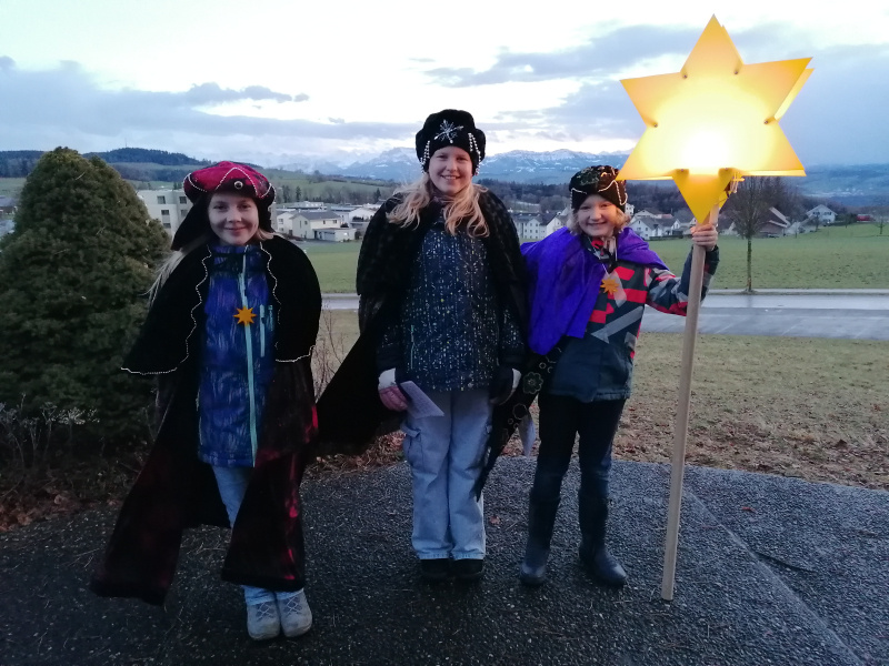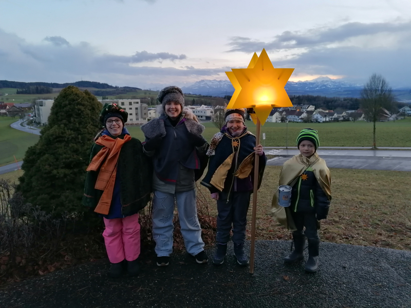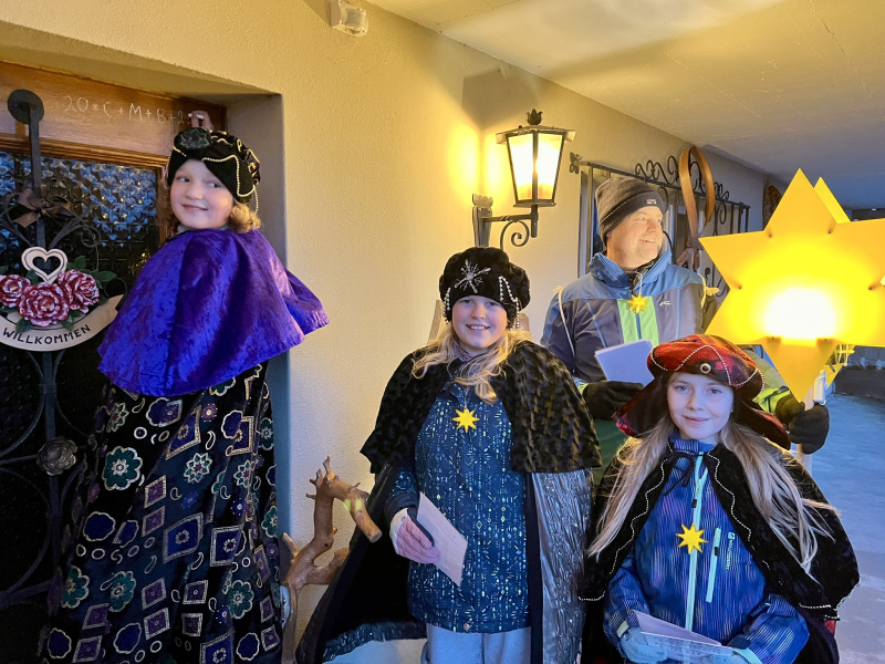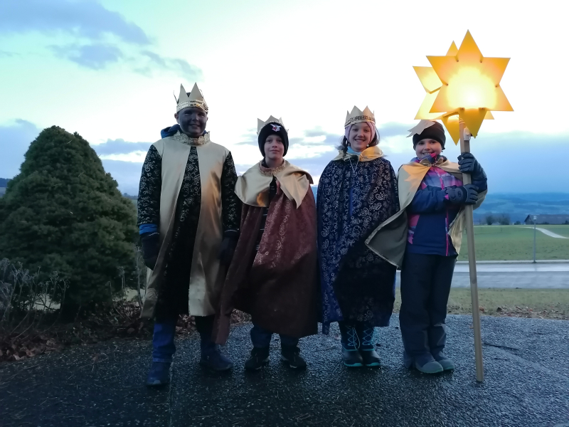 Das nasse und windige Wetter trübte die Stimmung keineswegs und so durften die Sternsinger wiederum viele Häuser, Höfe, Wohnungen und Quartiere segnen und konnten mit ihrem fröhlichen Auftreten viele Menschen erfreuen. Sie wurden oftmals mit einem herzlichen Lächeln erwartet und mit dankbaren Worten oder sogar auch mit Süssigkeiten und warmen Getränken verwöhnt. Es waren für alle Beteiligten sehr schöne Augenblicke und wertvolle Begegnungen. Herzlichen Dank!