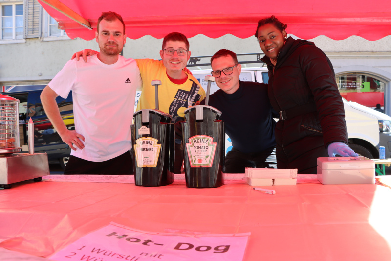 Den Senf dazu, das geben vier junge Leute aus Hellbühl und Schötz an ihrem Hot Dog Stand. «Einfach mal probieren!», ist ihre Devise. Die Jungen müssten auch etwas machen, finden sie, und gehen mit gutem Beispiel voran. Der Hot Dog schmeckt.