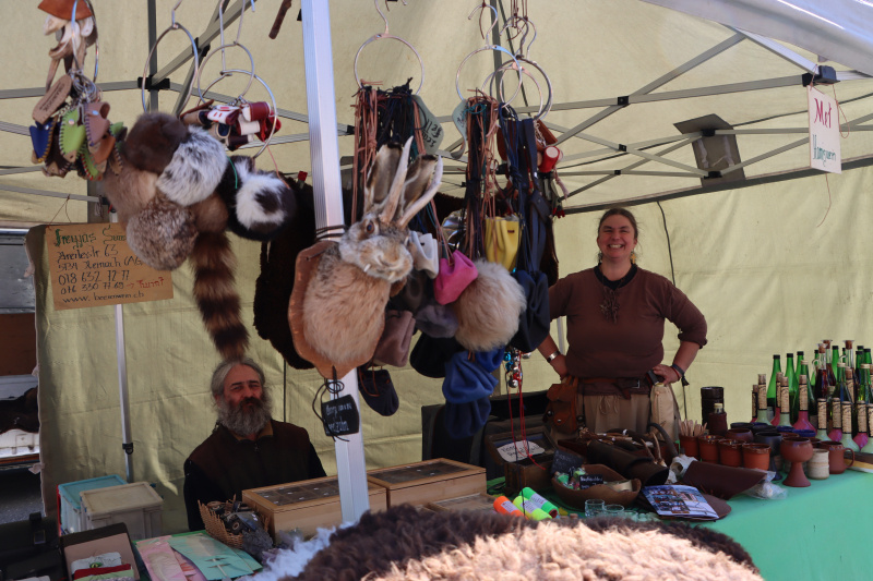 Unverlegen für Y ist man bei Freyjas Swissteam: «Yak-Felle haben wir nicht», lacht die Frau am Stand hinter Trinkhörnern, Honigweinen und Geweihen. «Aber Felle von Schaf, Hase, Bison, Fuchs und Kojote.» Pelzig, ihre Auswahl.