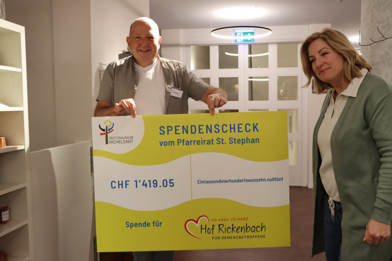 Am 20. November hatte der Pfarreirat St. Stephan Beromünster zu einem «Abenteuer und Genuss-Nachmittag» im Pfarreiheim eingeladen. Dass dabei doppelt so viele Gäste erschienen als erwartet, brachte ihn nur kurzfristig ins Schwitzen. Das Risotto wurde beinahe wundersam vermehrt und reichte für alle, sodass auch die Kollekte, die für die Institution Hof Rickenbach bestimmt war, sehr ergiebig ausfiel: 1419.05 Franken kamen an jenem Nachmittag zusammen. Stolz und voller Freude konnte der Pfarreirat den Spendenbetrag vergangenen Montagabend der Institution für Demenzbetroffene in Rickenbach überreichen.