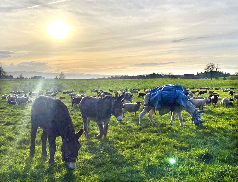 So muss es schon zu biblischen Zeiten ausgesehen haben, wenn ein Schäfer mit seiner Herde, einigen Wachhunden und Eseln unterwegs war.