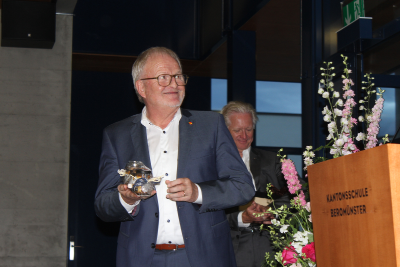 Hans-Peter Arnold überbrachte zum letzten Mal in seiner Funktion als Gemeindepräsident die besten Wünsche der Standortgemeinde Beromünster und betonte die vielen Verbindungen der Gemeinde mit der Schule. «Oben im Sandhübel entstehen Visionen, das ist die DNA der Kanti Beromünster.» Er nahm ebenfalls Bezug auf das Werk «Neuland» von Maturandin Vera Brigger aus Hildisrieden, das im Rahmen des Schwerpunktfachs Bildnerisches Gestalten entstanden ist. Er erinnerte an die Schlachtfeier 2022, wo Beromünster Gastgemeinde war und zusammen mit der Kanti einen mutigen Auftritt realisierte, oder an «Jugend debattiert», wo Arnold Jurymitglied war und begeistert von den jungen Debattierenden.