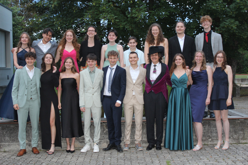 Entspannt war auch der Ausklang des Abends. Nach der Zeugnisvergabe, einem kleinen Abschlusswort von Marco Stössel und dem passenden Song «Free Me» von Joss Stone begann der gemütliche Teil der Zeremonie. Ein Maturafeierfoto mit Freunden und Familien draussen vor dem Teich, gemütliches Beisammensitzen und Plaudern. Dazu wurden die Gäste vom Mensateam, unterstützt durch die Schüler und Schülerinnen der 5. Klassen, ausreichend verpflegt. Bis spät am Abend unterhielten sich die Schüler und Schülerinnen, Eltern, Lehrpersonen und Schulleiter sowie Politiker über Gott und die Welt.