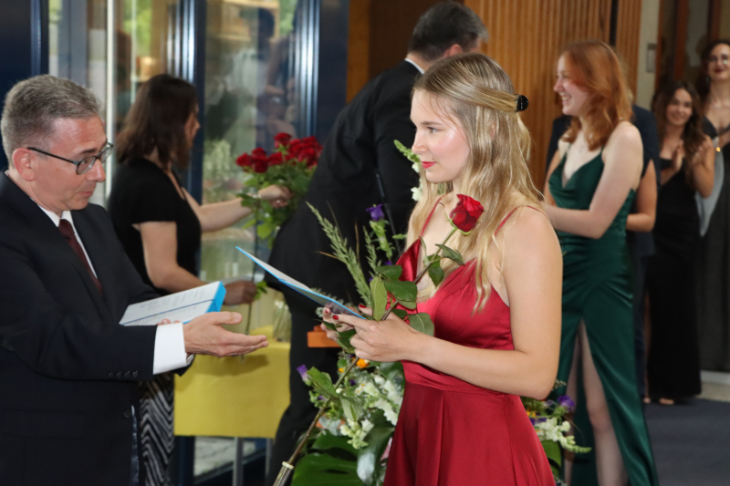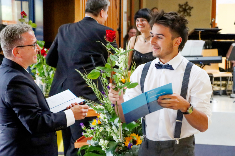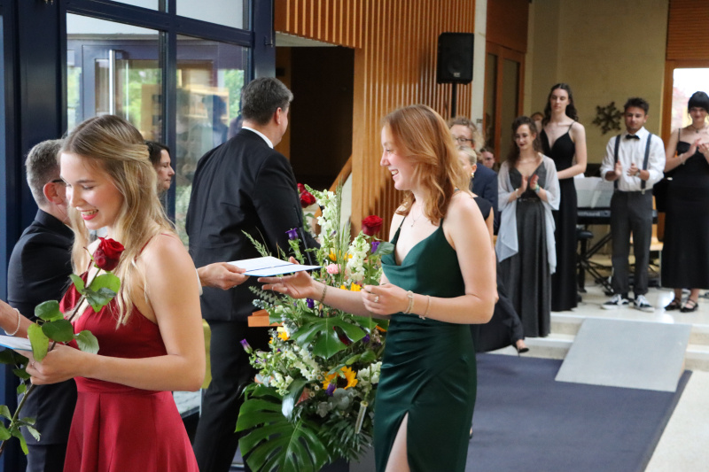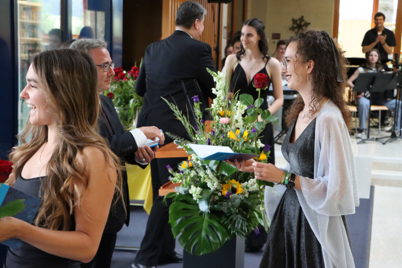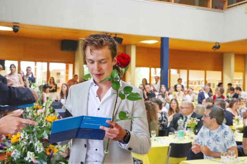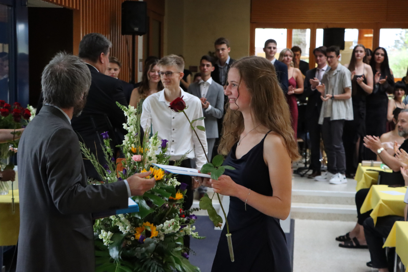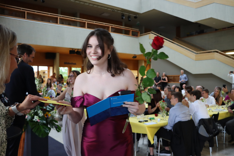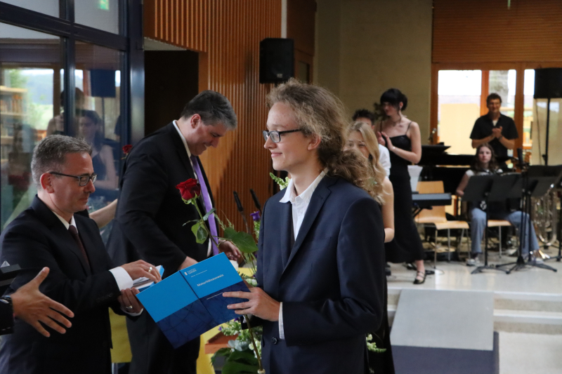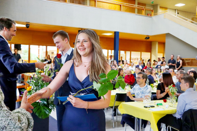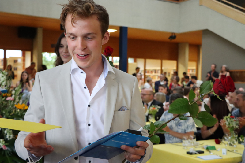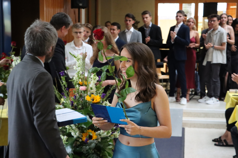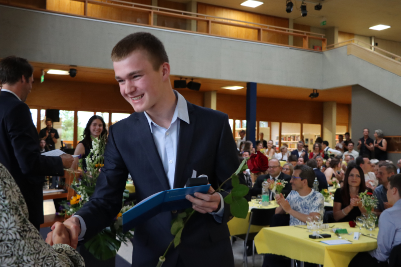 Insgeheim waren die 48 Maturand:innen natürlich auch ein wenig ungeduldig, wollten sie doch einfach nur wissen, welchen Schnitt sie denn im Zeugnis erreicht haben. Zwischen Rühmen und Erleichterung fand Stössel aber auch einige inspirierende Worte. So beauftragte er die Maturi und Maturae, von nun an in die weite Welt der Möglichkeiten einzutauchen und ihre Ziele zu verwirklichen. Er sprach die Anforderungen an, die fortan an sie gestellt würden. «Sie haben das Rüstzeug, Verantwortung zu übernehmen. Tragen Sie Verantwortung! Treffen Sie mutige Entscheidungen!»