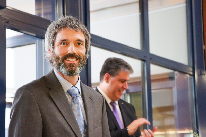 Martin Schwab, CEO der CKW AG wurde mit den launigen Worten von Marco Stössel angekündet, dass er sich mit der Einladung erhoffte, dass die Energie garantiert fliesse, worauf gleich das Headset von Martin Schwab keinen Strom hatte, was viel Erheiterung auslöste. Wie um zu beweisen, wie gut die Kanti Beromünster Improvisation kann, wurde dieses Problem in Windeseile und geistesgegenwärtig gelöst. Martin Schwab redete dann eindrücklich und frei über die Themen Neuland und Neugier und outete sich als grosser Star Wars-Fan. Er zitierte Yodas Aufforderung an Luke Skywalker in «The Empire Strikes Back»: «No! Try not. Do. Or do not. There is no try!» Er forderte die Jungen final dazu auf: «Gebt 100 Prozent, steht für eure Werte ein, geht keine Kompromisse ein. Habt Fun dabei. Viel Glück!»
