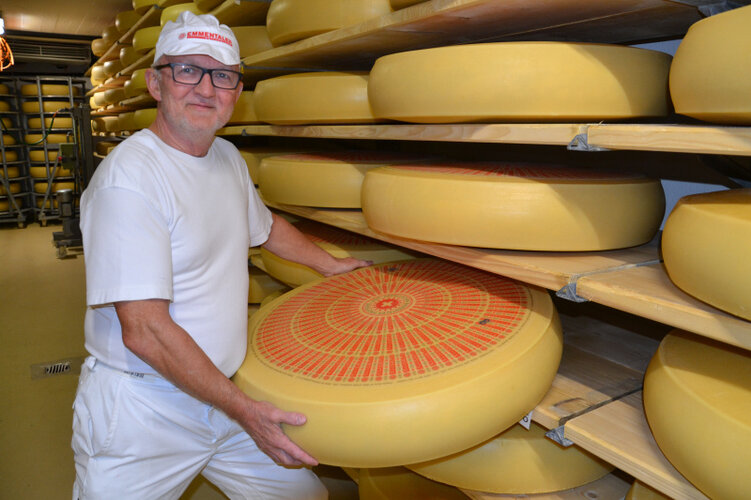 Die Käserei Schlierbach-Krumbach.Beklopft und angebohrtBereits in der Käserei wird pro Charge ein Käse auf seine Qualität hin geprüft und vortaxiert. Der Käse wird zuerst abgeklopft. Dann wird mit einem sogenannten «Böhrlig» eine rund zehn Zentimeter lange Probe entnommen, begutachtet und vorsichtig wieder in den Käselaib eingefügt. Rund ein Monat später erfolgt eine erneute Taxierung durch ein Fachgremium der Sortenorganisation. «Die maximale Punktzahl, die ein Emmentaler AOP erreichen kann, beträgt…