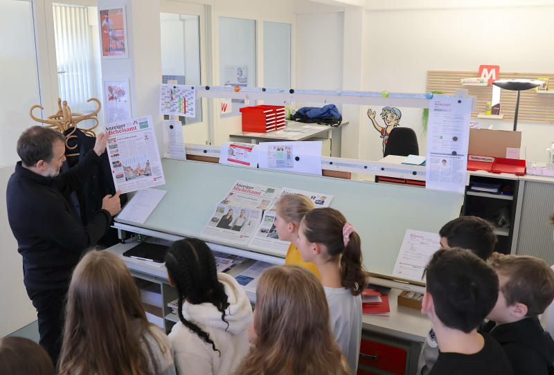 Praktisch, dass mit dem «Michelsämter» rund 300 Meter vom Primarschulhaus eine waschechte Zeitung produziert wird, die «vom ersten bis zum letzten Buchstaben in diesem Gebäude geschaffen wird», wie uns Herr René Troxler direkt zu Beginn der Besichtigung erklärte. Die perfekte Gelegenheit für unsere jungen Reporter, den Weg zur fertigen Zeitung hautnah mitzuerleben und die einzelnen Schritte mit den Experten auf ihrem Gebiet mitzugehen.