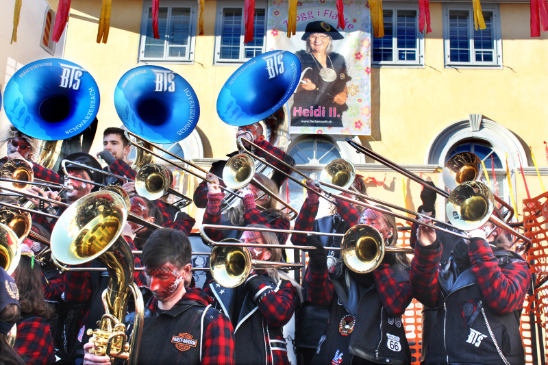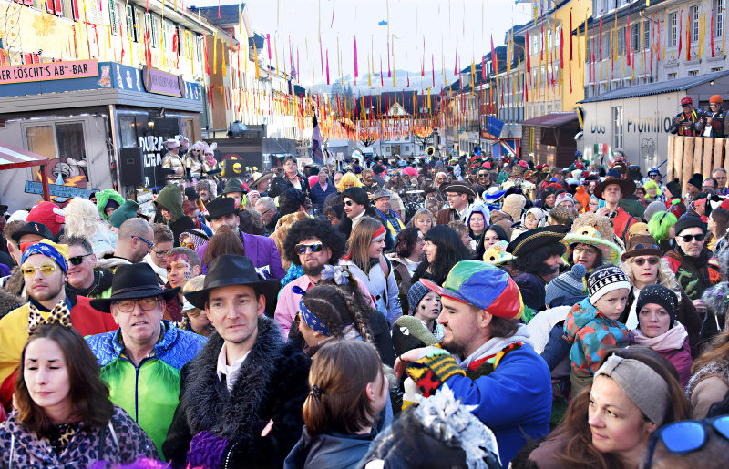 Darauf haben die Fasnächtler lange warten müssen: Endlich findet die Fasnacht wieder in völlig normalem Rahmen statt. Schräg, ausgeflippt mit Trommelwirbeln, schränzenden Klängen und vor allem mit Tuch- fühlung beim Plaudern und beim Kafi Schnaps. So auch beim obli-gaten Startfurioso am Schmutzigen Donnerstag im Flecken. Das letzte Mal konnte dieses Ereignis im Jahr 2020 gefeiert werden.