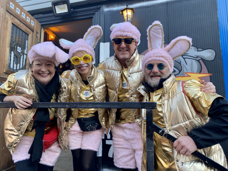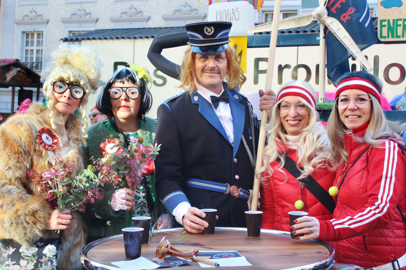 Entspannte Gesichter – soweit das unter der dicken Schminke erkennbar war – Masken, die man gerne anzieht und eine grandiose Stimmung herrschte am Donnerstagmorgen im Flecken. Die Guuggenmusigen hatten sich zu diesem Zeitpunkt schon bei der einen oder anderen Tagwache auf Betriebstemperatur geschränzt. Im Flecken war dafür selbstverständlich der «Platzhirsch», die Beromüügger, am Morgen um 5 Uhr zuständig. Vier Stunden später sorgten sie dann prächtig geschminkt mit dem ersten Auftritt aller beteiligten Guuggen für den eigentlichen Auftakt in die Fasnacht 2023. Der obere Flecken war verkehrsfrei, wie man das seit jeher kennt. Er wurde unter seinem Bänderschmuck zur Festhütte. Auch die Stimmung kletterte unverdrossen dem Kulminationspunkt entgegen – was er in den kommenden Tagen zweifellos weiterhin tun wird. Die Bars waren betriebsbereit und liefen wie geölt. Apropos: Nun ist auch das Geheimnis um den Beschluss der «Gwändlikommission» der 40 Jahre alten Gonzbeler Oelibrönner gelüftet. Sie erschienen als .... «Wöschwiiber».